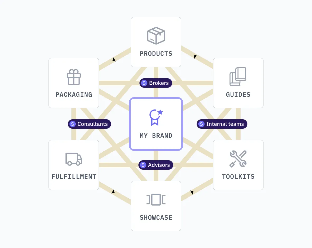 All the moving parts in one system: product development, packaging, guides, toolkits, showcase, shipping, and fulfillment—so operations don’t choke your growth.